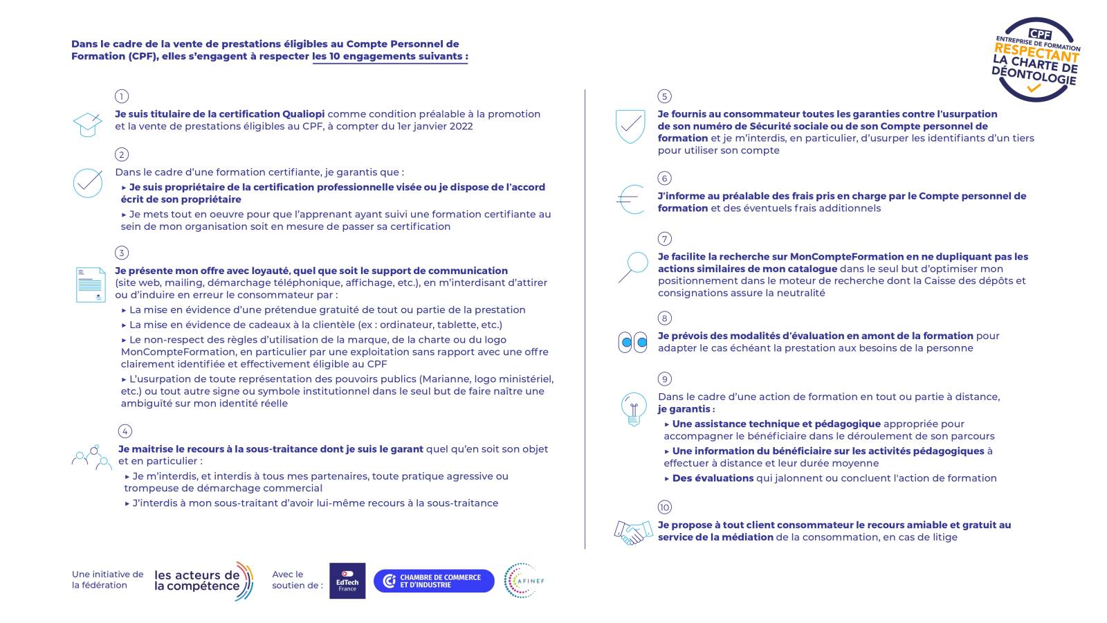 Cette charte s’applique aux entreprises délivrant des formations éligibles au Compte Personnel